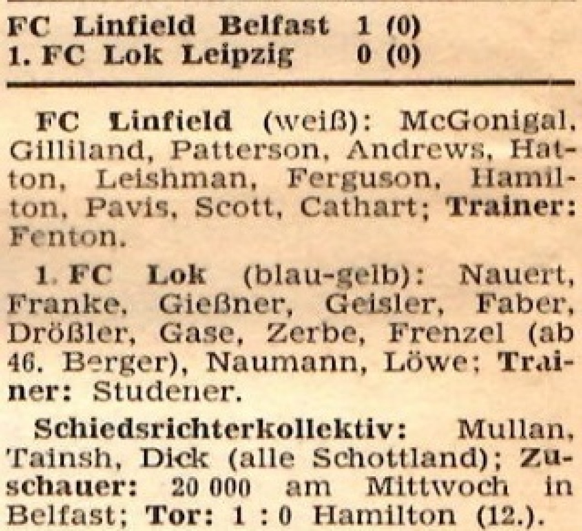 «Линфилд» Белфаст - «1. ФК Локомотив» Лейпциг - 1:0