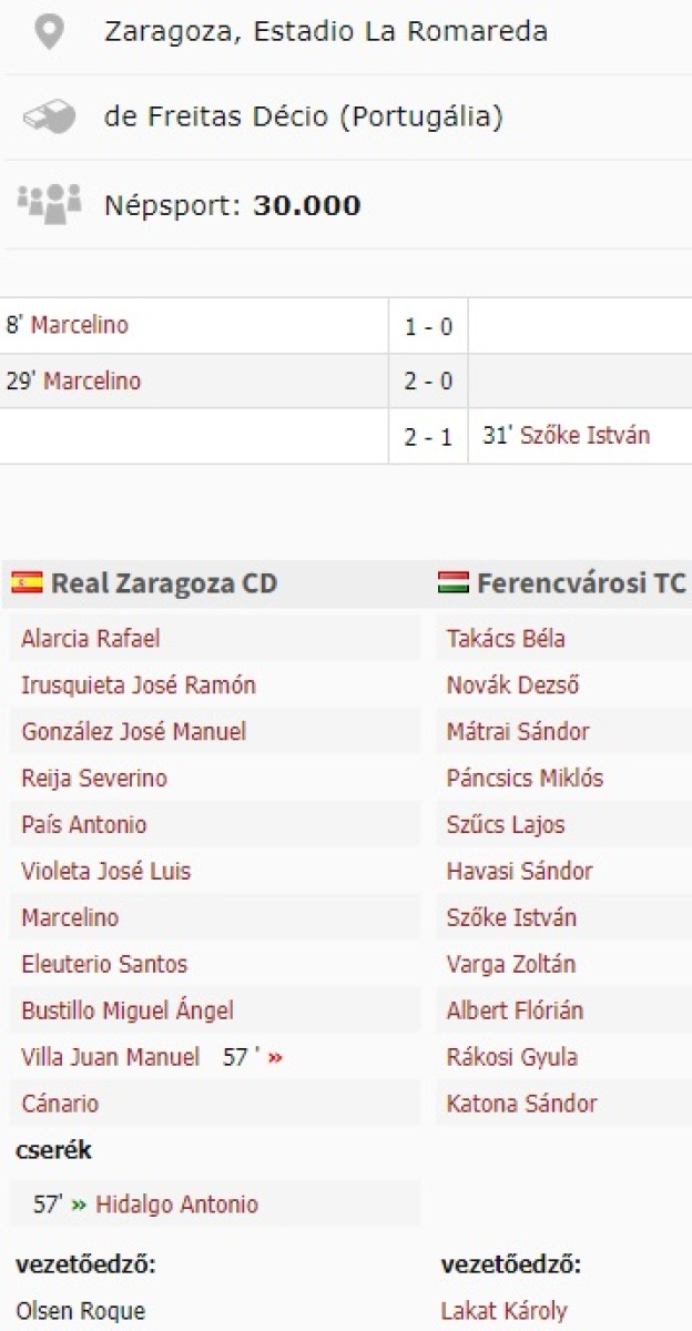 «Реал Сарагоса» Сарагоса - «Ференцварош» Будапешт - 2:1