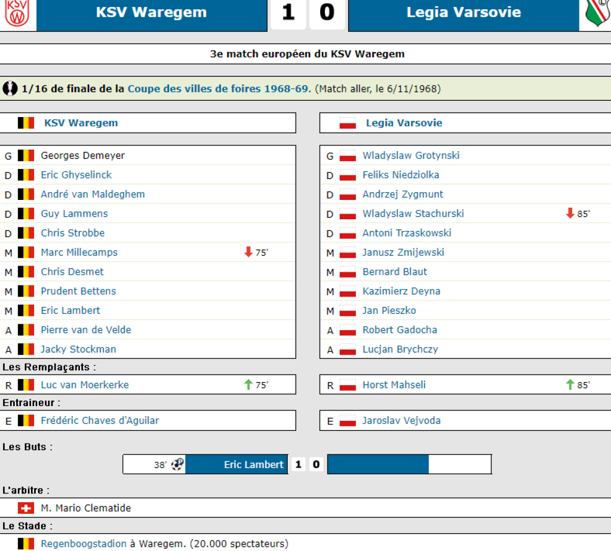 «Варегем» Варегем - «ВКС Легия» Варшава - 1:0