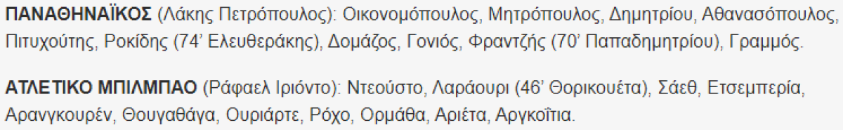 «Панатинаикос» Афины - «Клуб Атлетико де Бильбао» Бильбао - 0:0