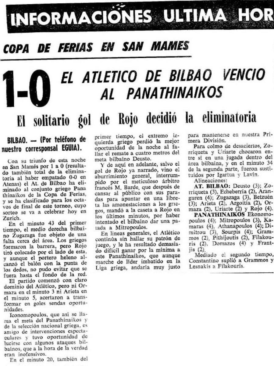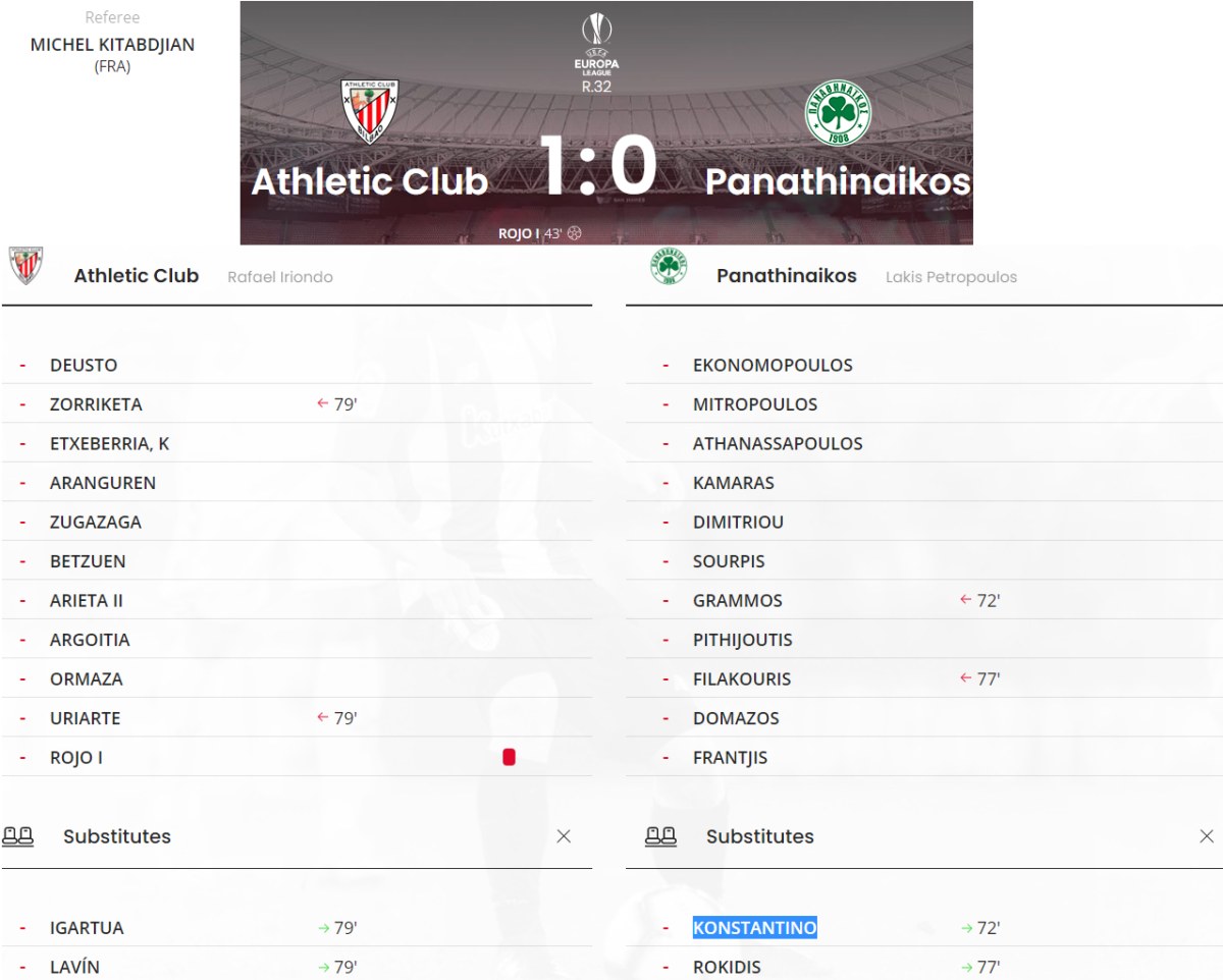 «Клуб Атлетико де Бильбао» Бильбао - «Панатинаикос» Афины - 1:0