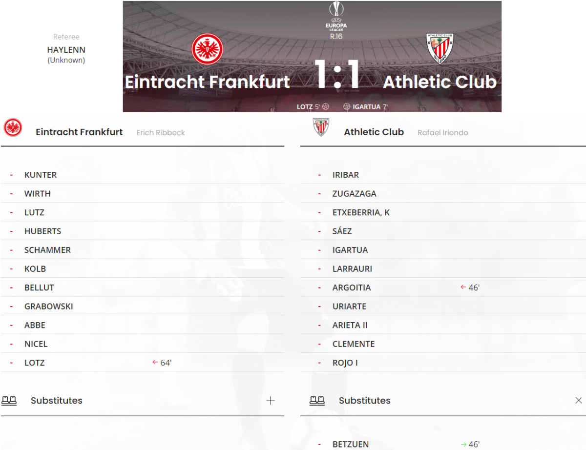 «Айнтрахт» Франкфурт-на-Майне - «Клуб Атлетико де Бильбао» Бильбао - 1:1