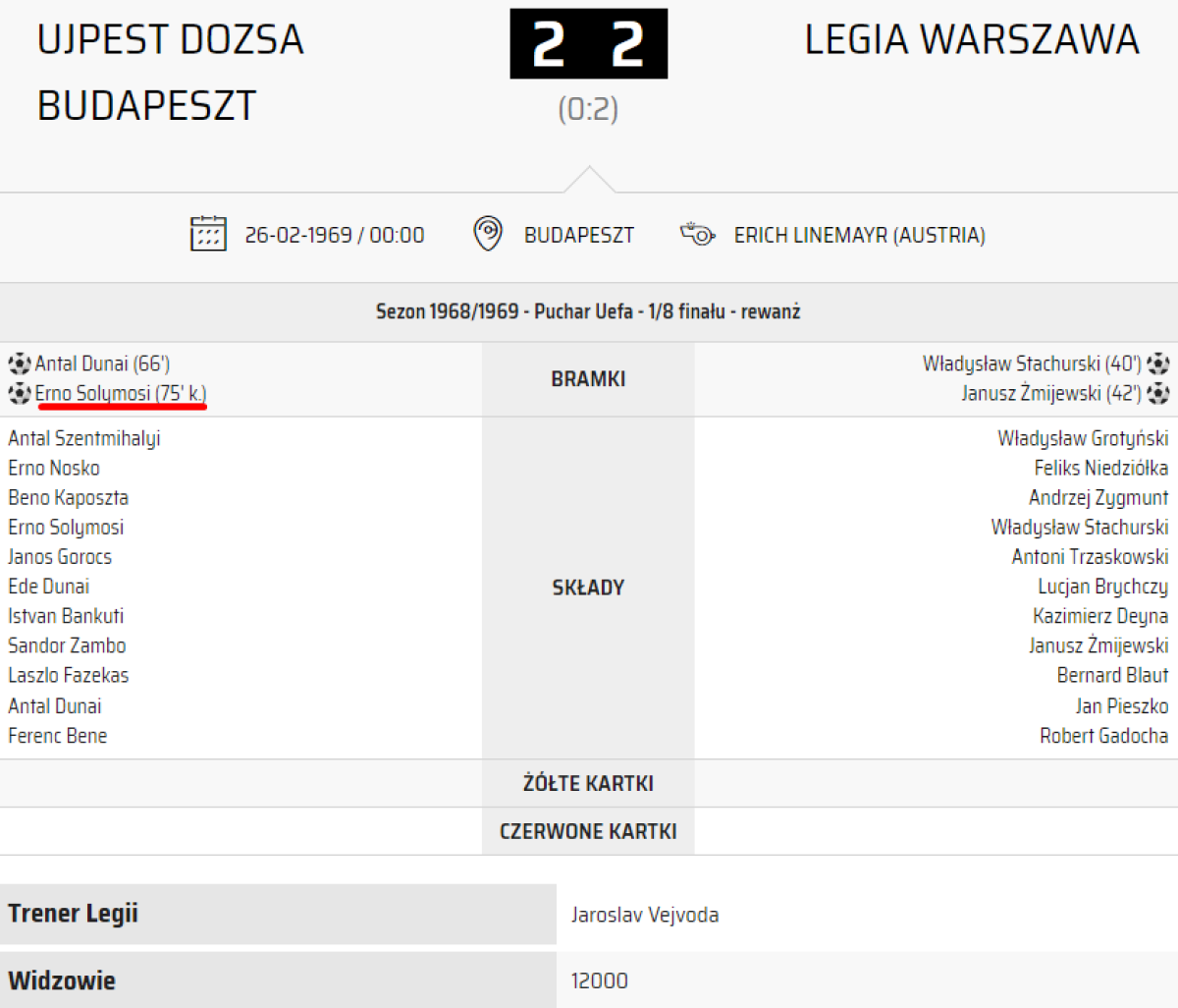 «Уйпешт Дожа» Будапешт - «ВКС Легия» Варшава - 2:2