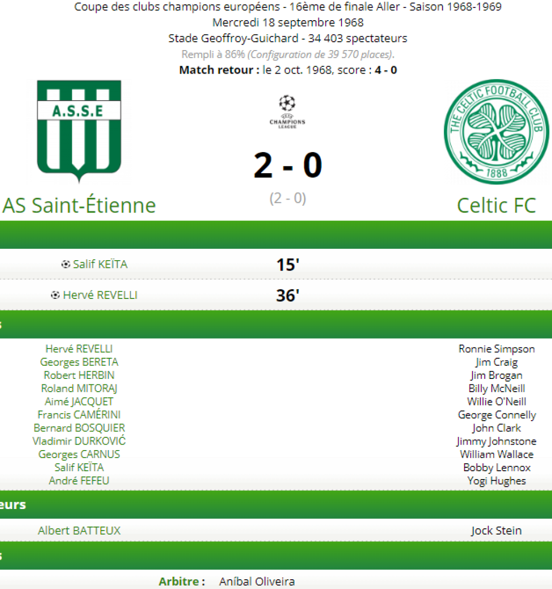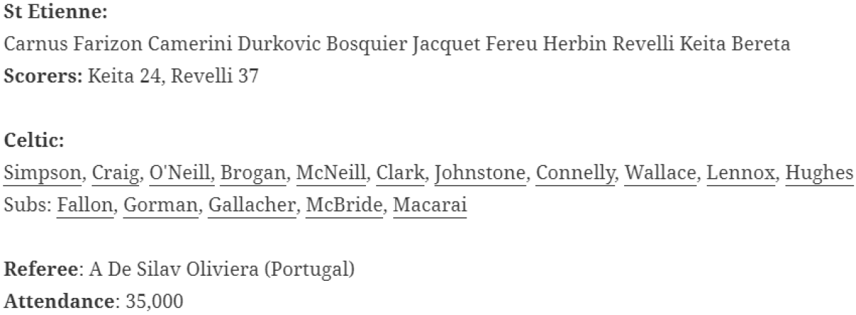«Сент-Этьен» Сент-Этьен - «Селтик» Глазго - 2:0