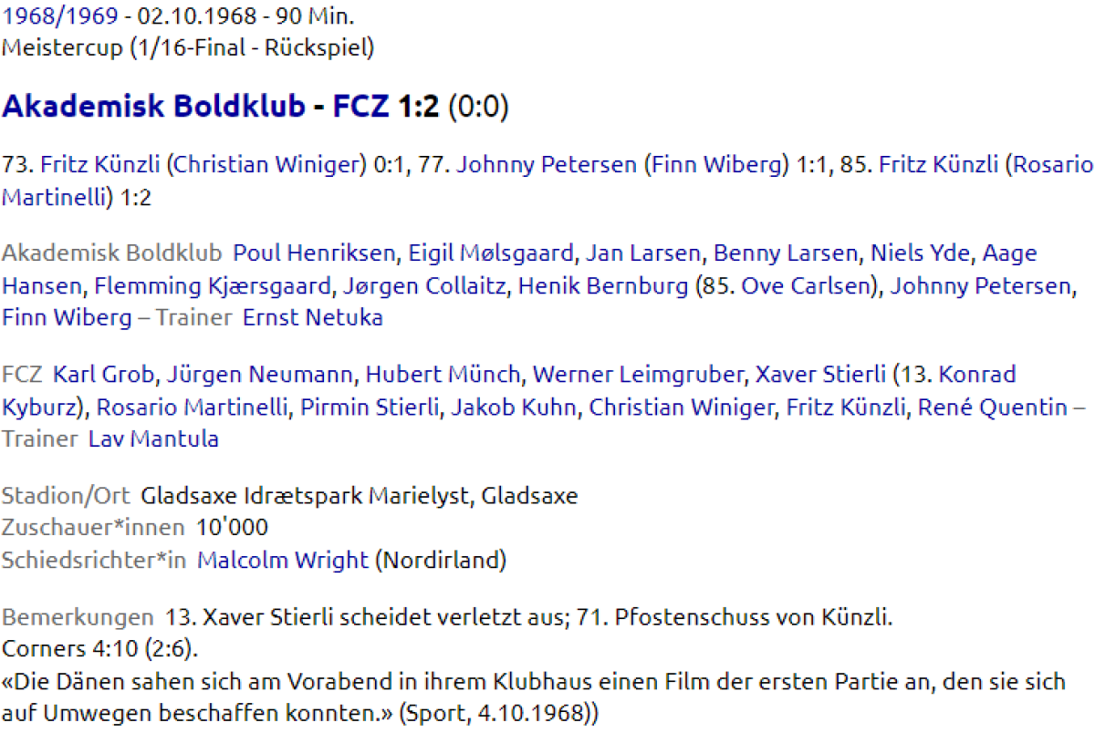 «АБ Академиск» Гладсаксе - «Цюрих» Цюрих - 1:2