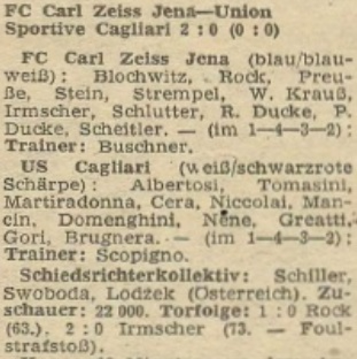 «Карл Цейсс» Йена - «Кальяри» Кальяри - 2:0