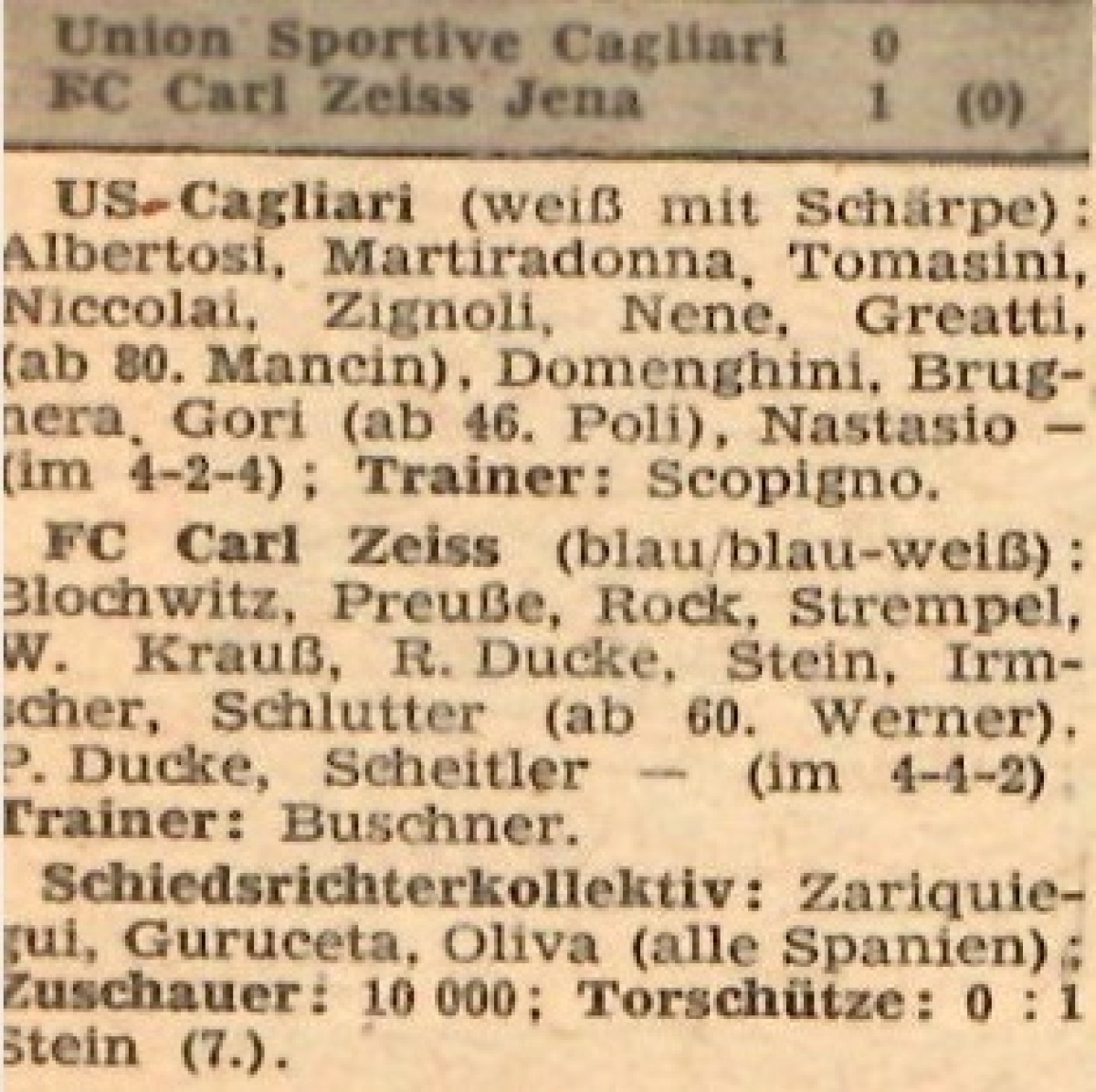 «Кальяри» Кальяри - «Карл Цейсс» Йена - 0:1
