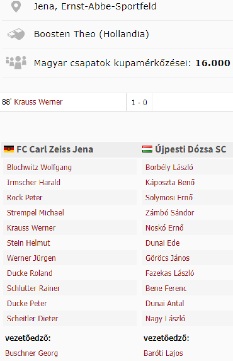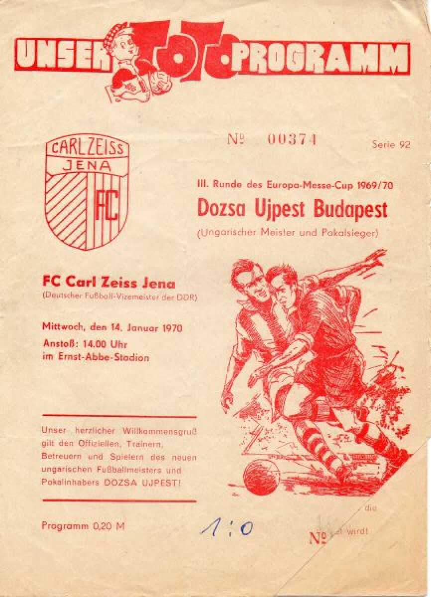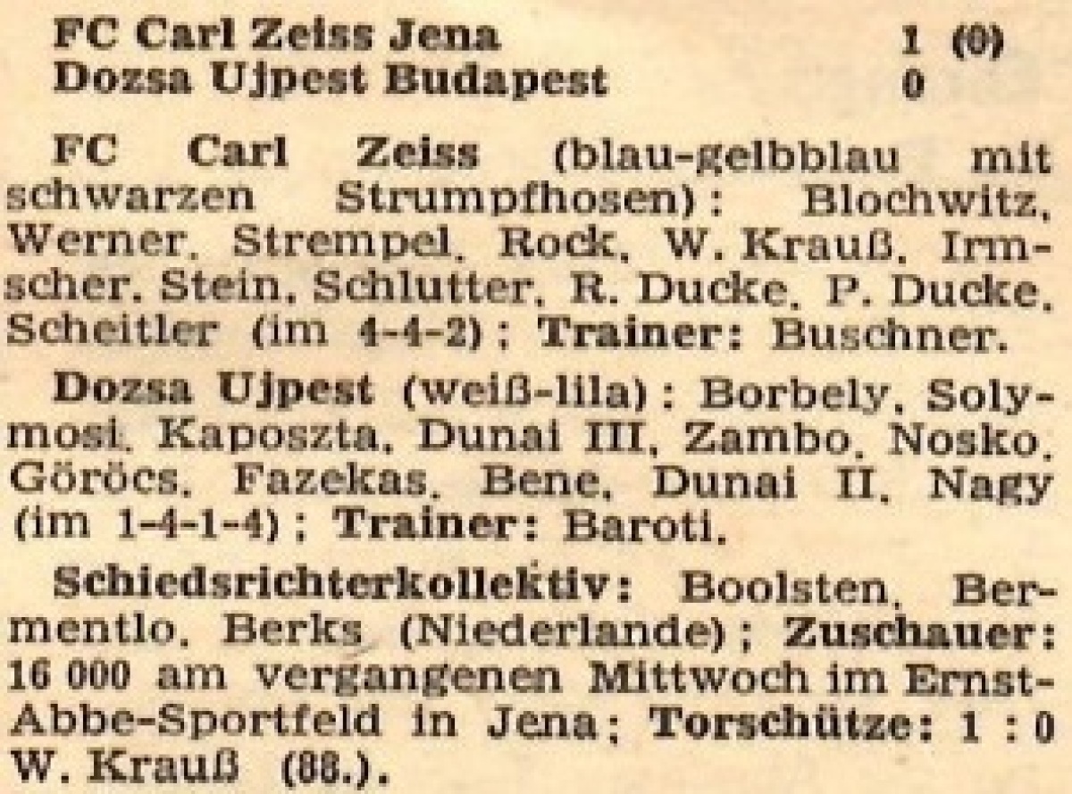 «Карл Цейсс» Йена - «Уйпешт Дожа» Будапешт - 1:0