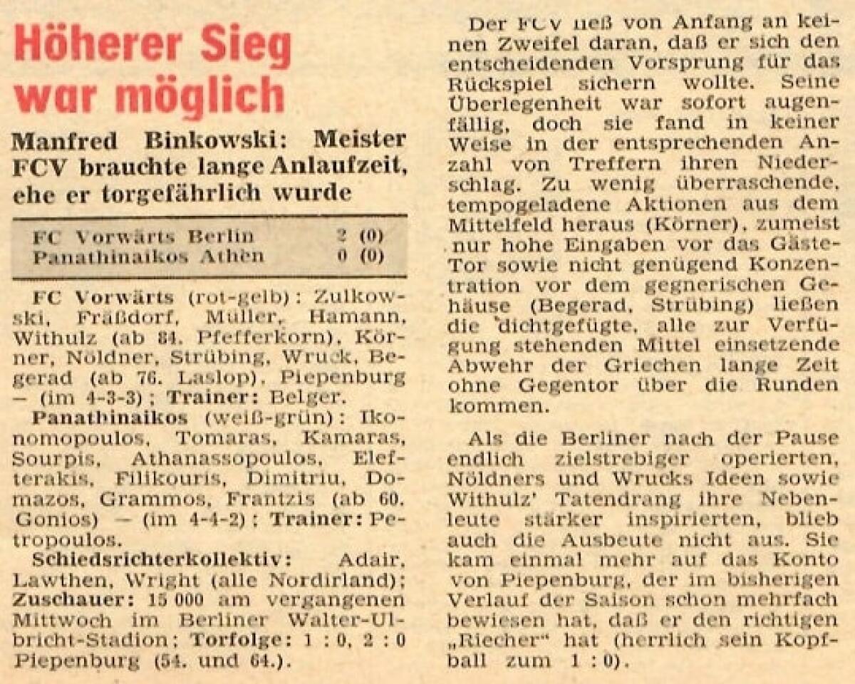 «Форвёртс» Берлин - «Панатинаикос» Афины - 2:0