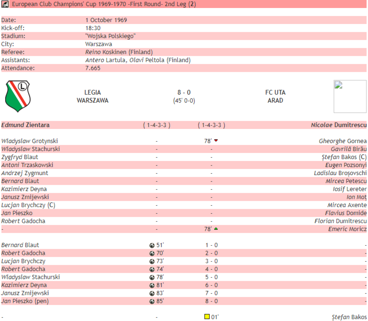 «ВКС Легия» Варшава - УТА Арад - 8:0