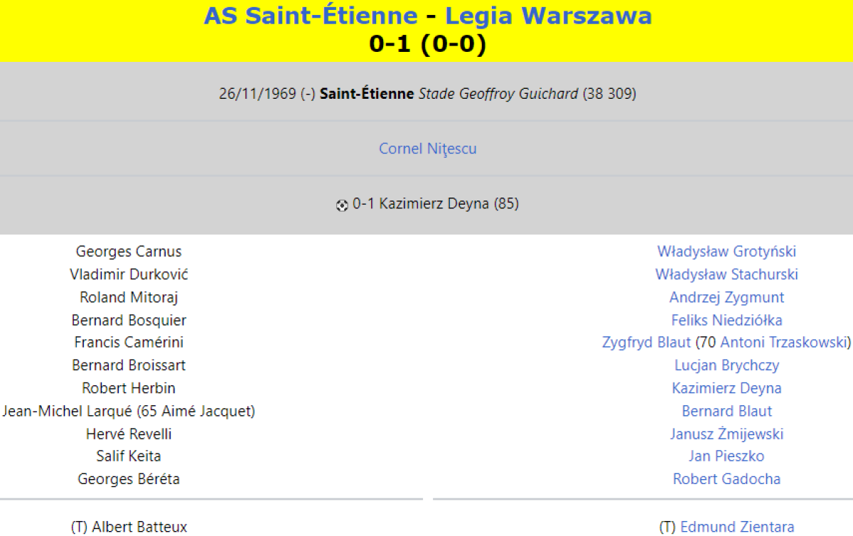 «Сент-Этьен» Сент-Этьен - «ВКС Легия» Варшава - 0:1