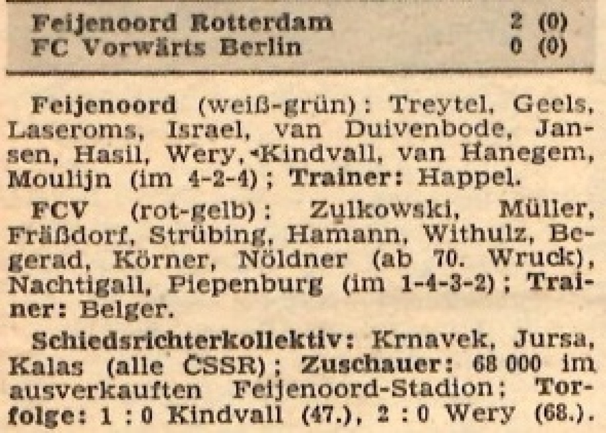 «Фейеноорд» Роттердам - «Форвёртс» Берлин - 2:0