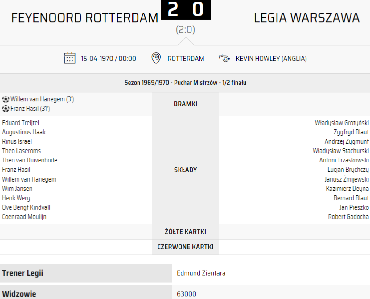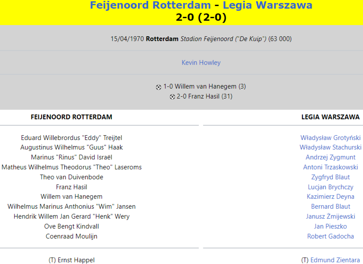 «Фейеноорд» Роттердам - «ЦВСК Легия» Варшава - 2:0