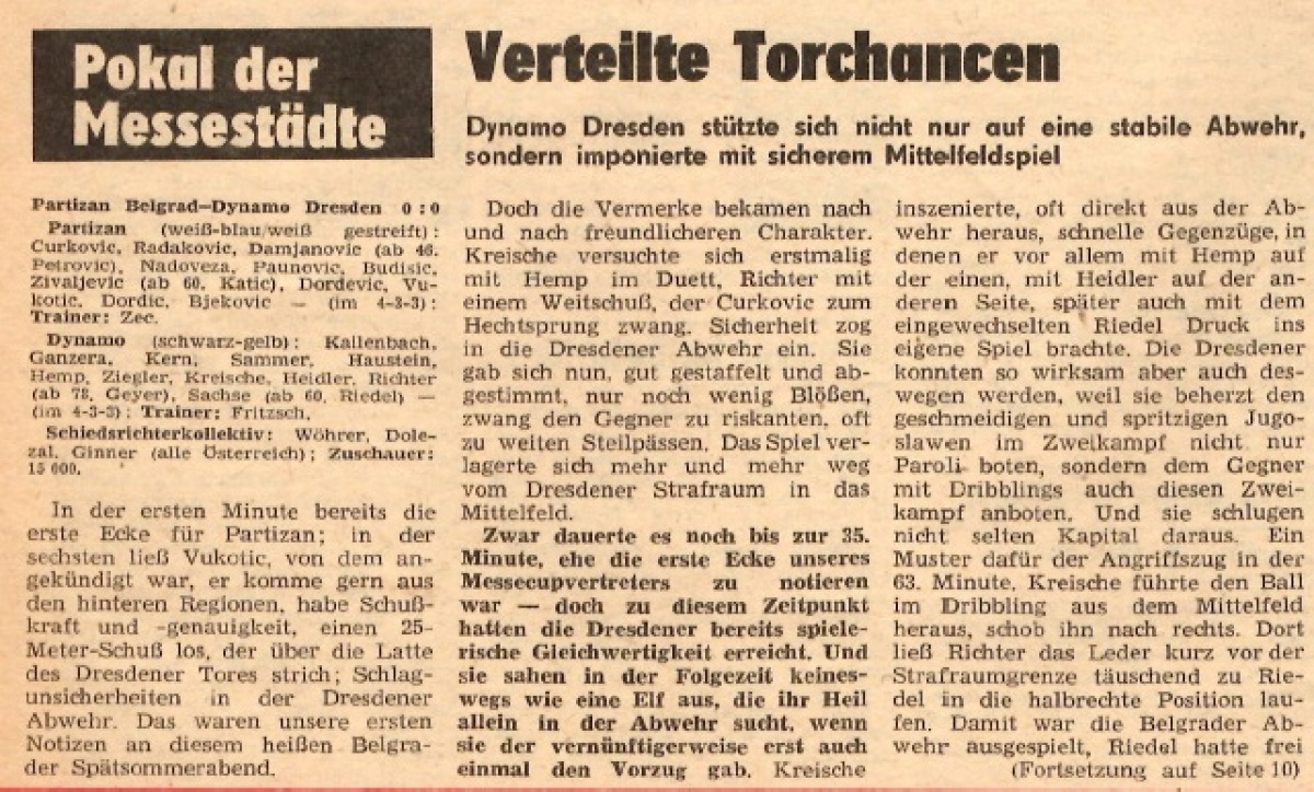 «Партизан» Белград - «Динамо» Дрезден - 0:0