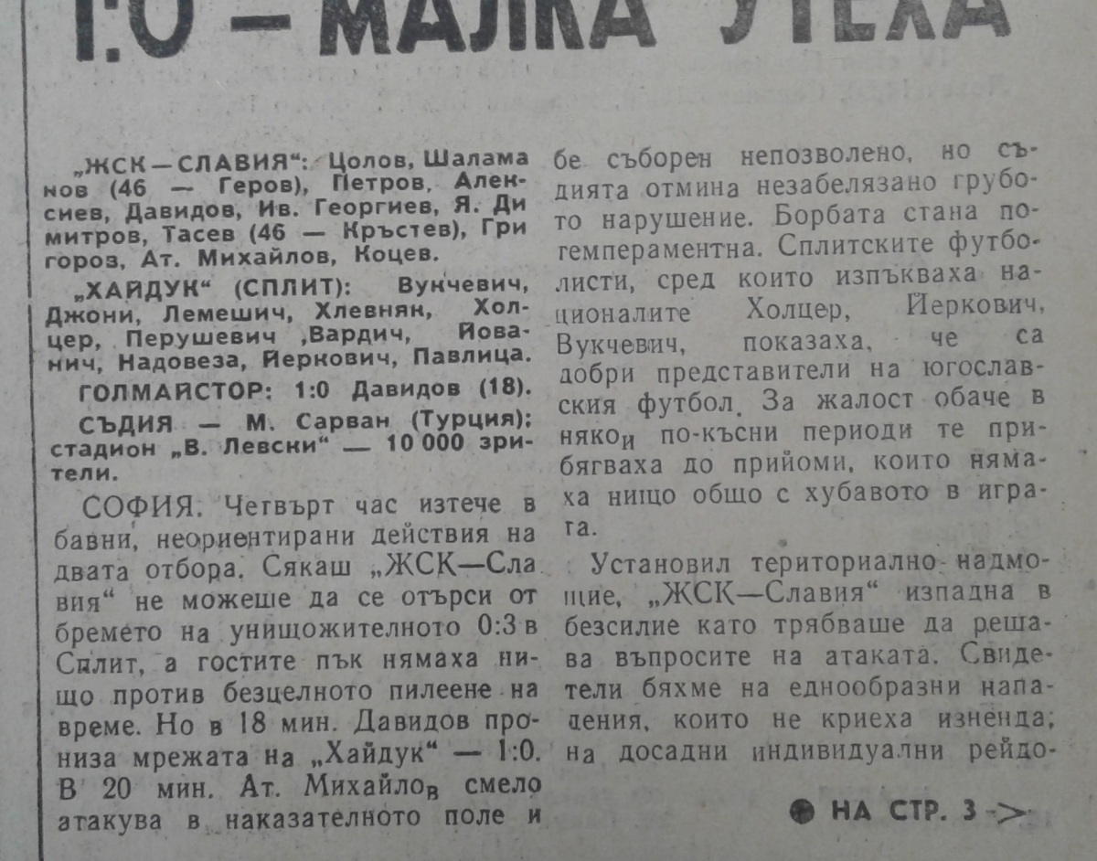 «ЖСК Славия» София - «Хайдук» Сплит - 1:0