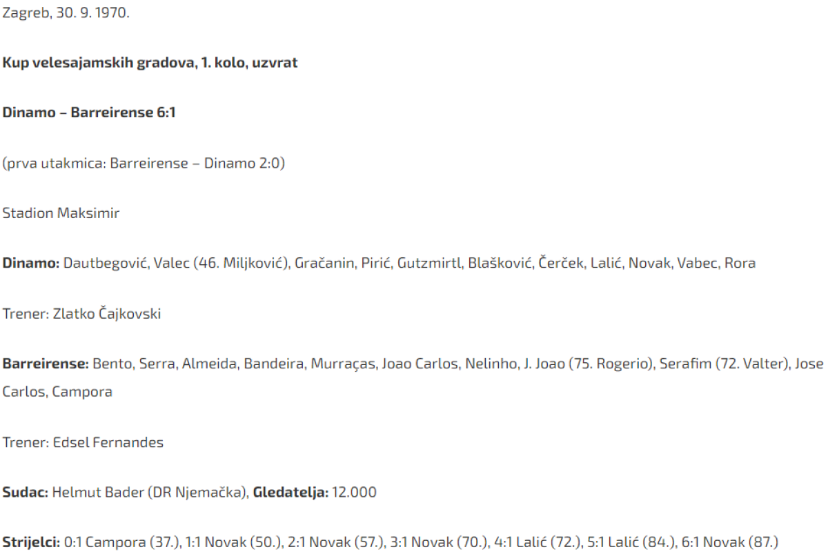 «Динамо» Загреб - «Баррейренси» Баррейру - 6:1