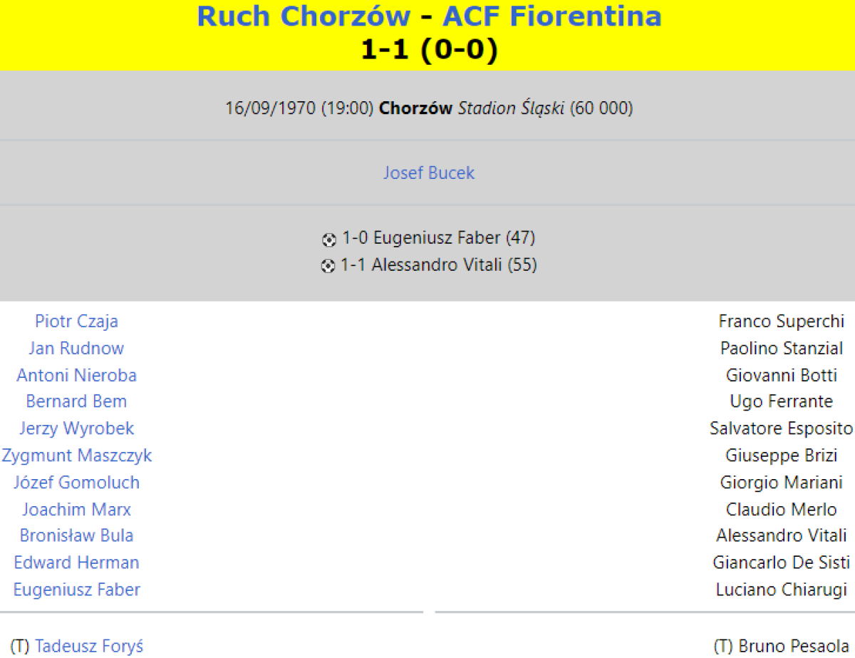 «Рух» Хожув - «Фиорентина» Флоренция - 1:1