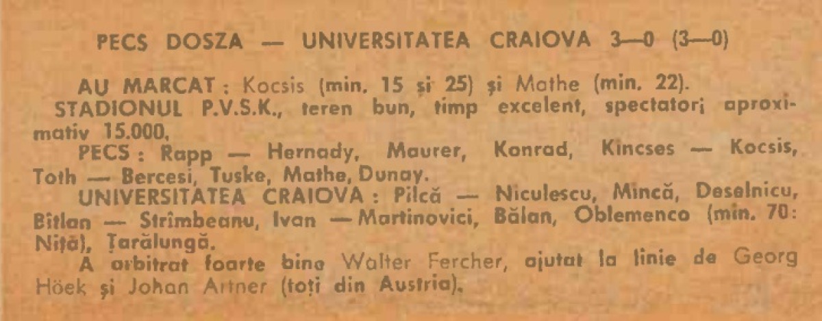 «Печ Дожа» Печ - «Университатя» Крайова - 3:0