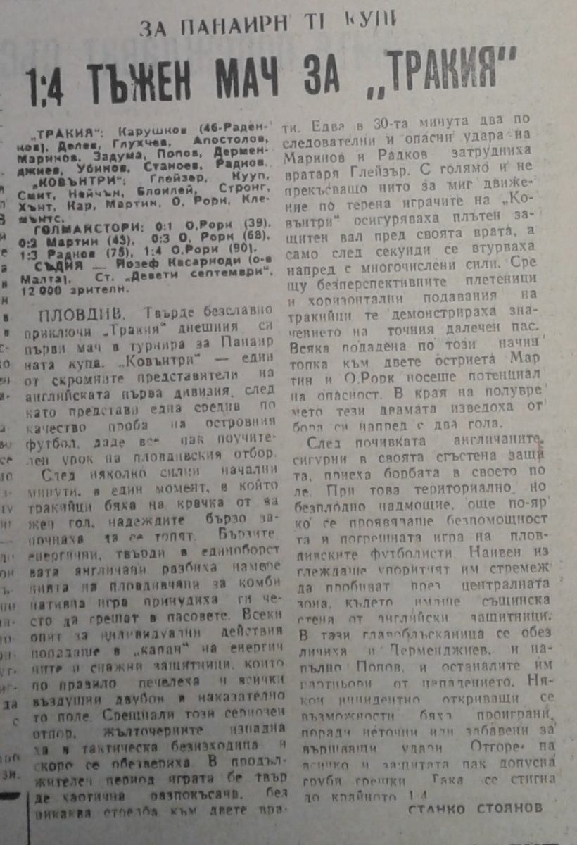 «Тракия» Пловдив - «Ковентри Сити» Ковентри - 1:4