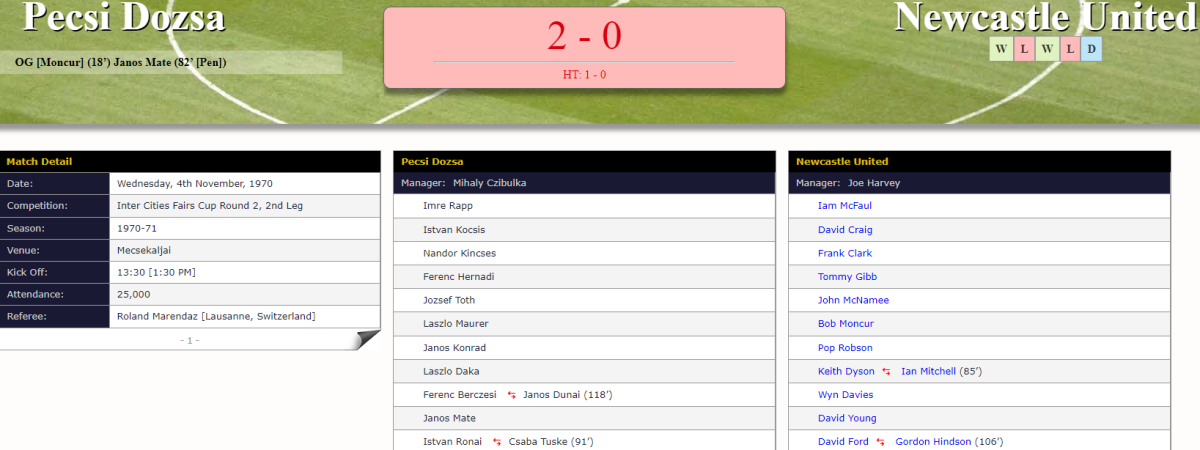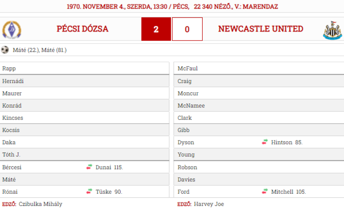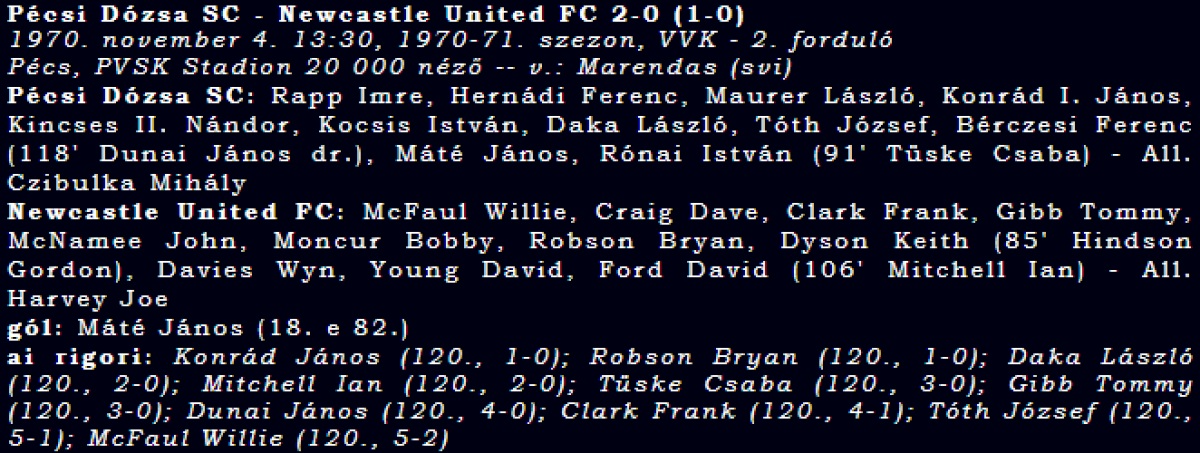 «Печ Дожа» Печ - «Ньюкасл Юнайтед» Ньюкасл-апон-Тайн - 2:0