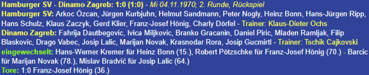 «Гамбургер» Гамбург - «Динамо» Загреб - 1:0