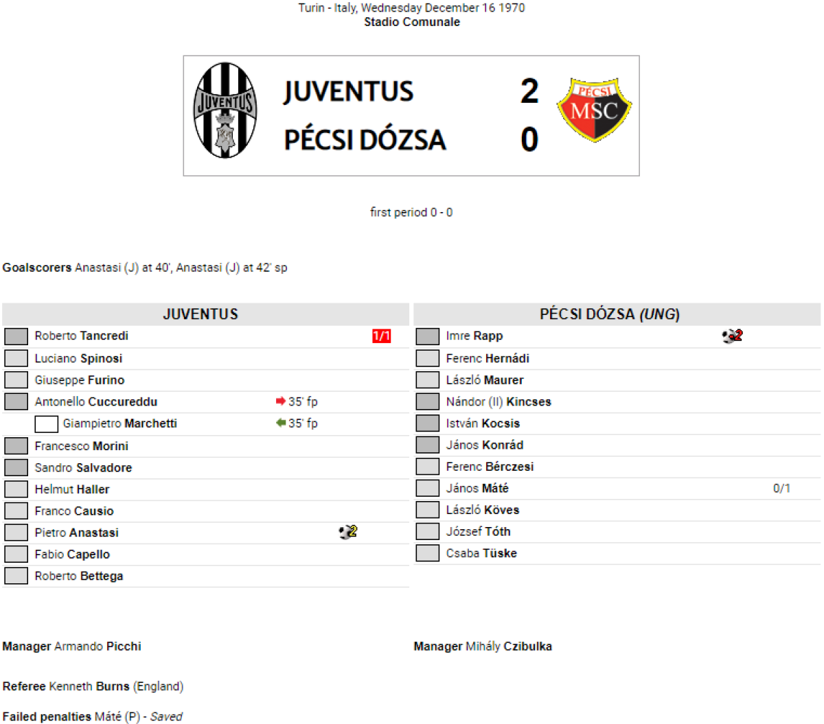 «Ювентус» Турин - «Печ Дожа» Печ - 2:0