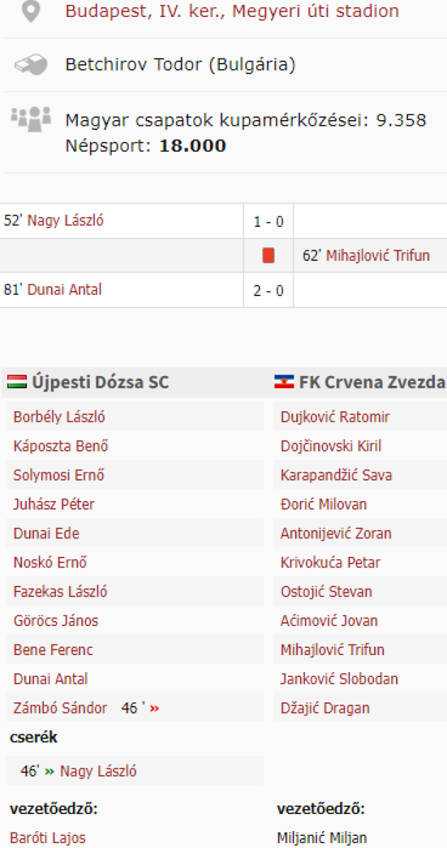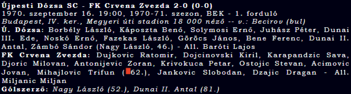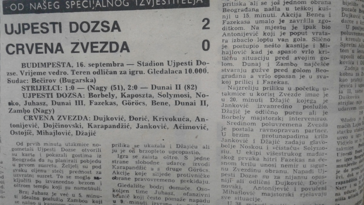 «Уйпешт Дожа» Будапешт - «Црвена Звезда» Белград - 2:0