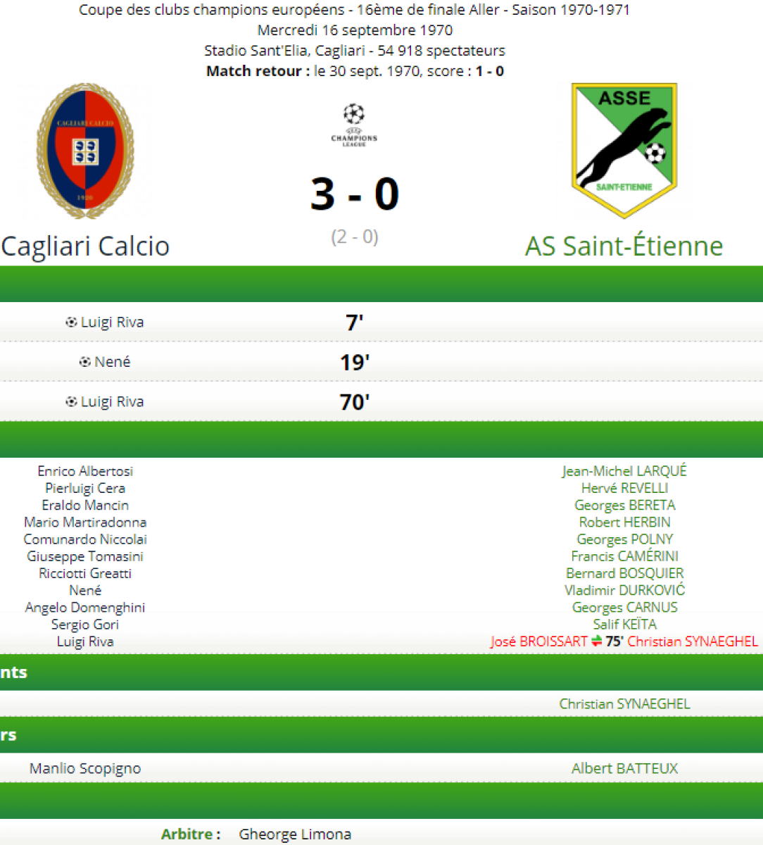 «Кальяри Кальчо» Кальяри - «Сент-Этьен» Сент-Этьен - 3:0