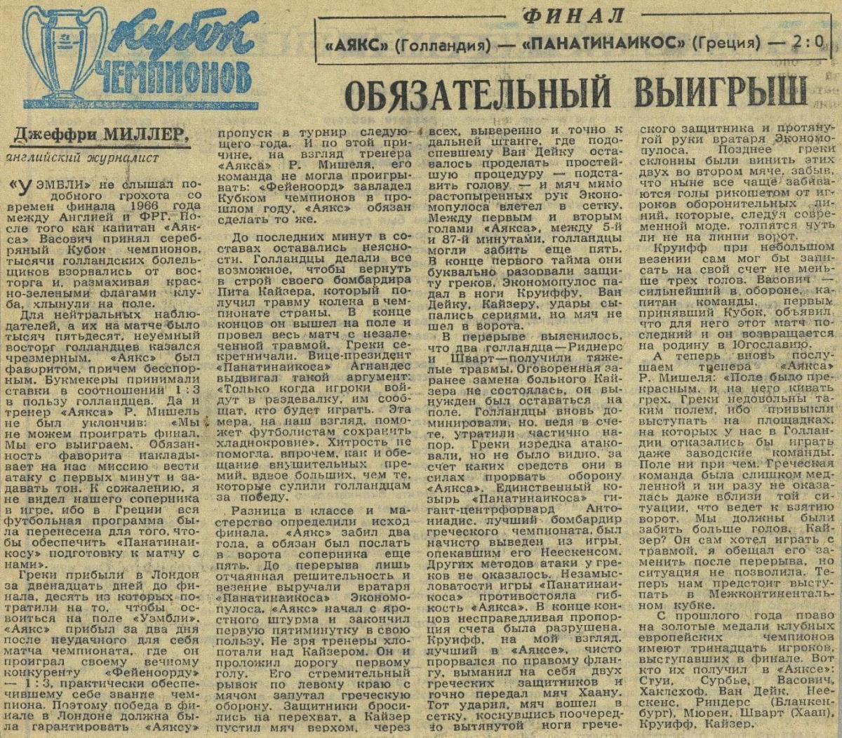 «Аякс» Амстердам - «Панатинаикос» Афины - 2:0