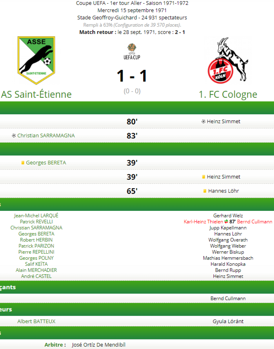 «Сент-Этьен» Сент-Этьен - «1. ФК Кёльн» Кёльн - 1:1