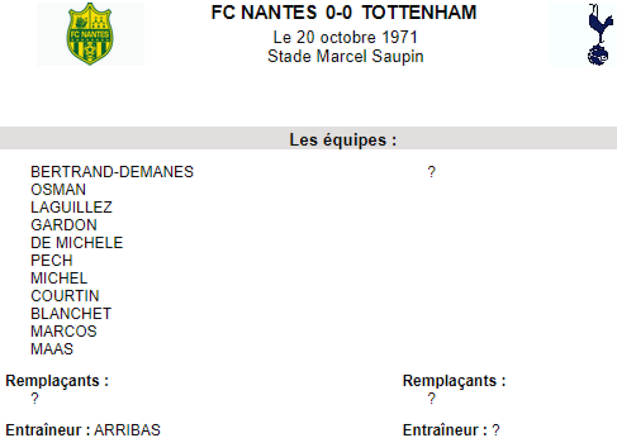 «Нант» Нант - «Тоттенхэм Хотспур» Лондон - 0:0