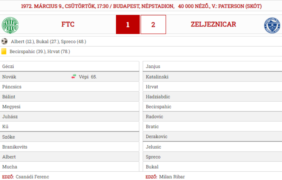 «Ференцварош» Будапешт - «Железничар» Сараево - 1:2