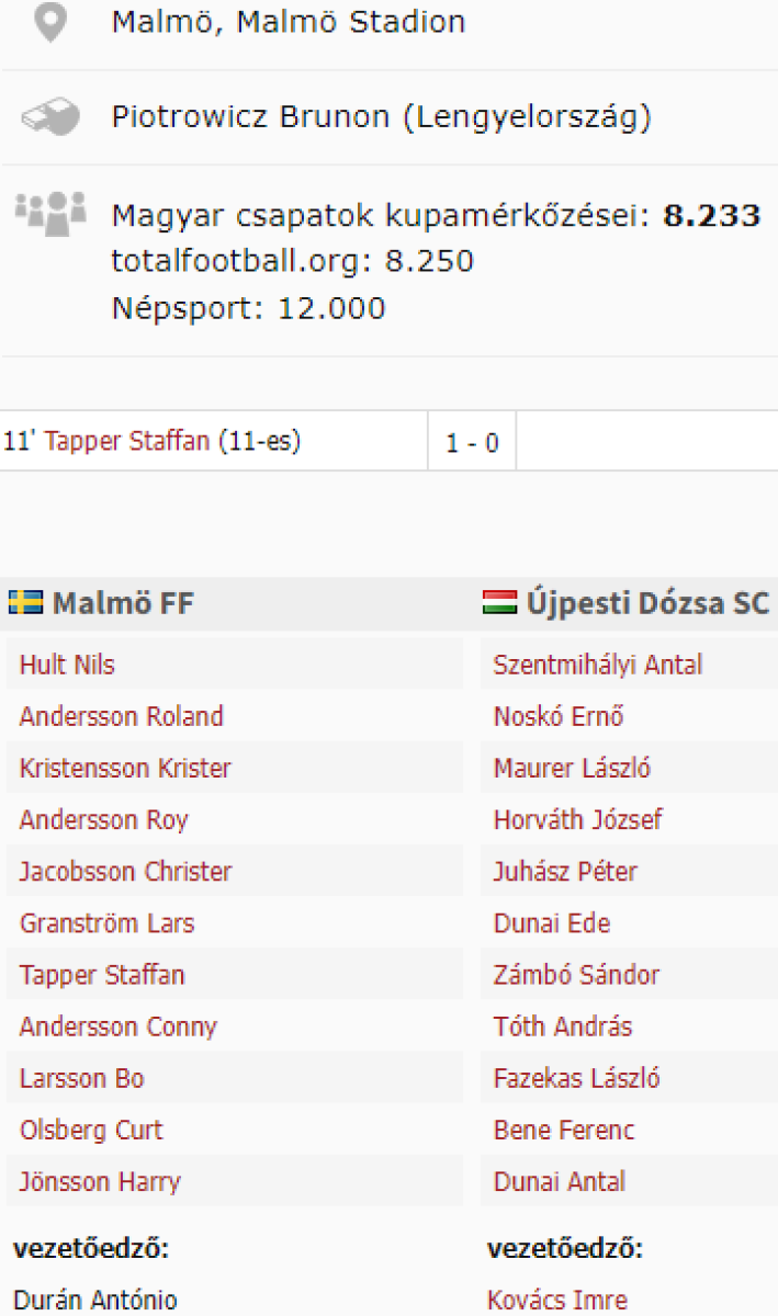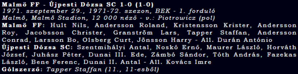 «Мальмё» Мальмё - «Уйпешт Дожа» Будапешт - 1:0