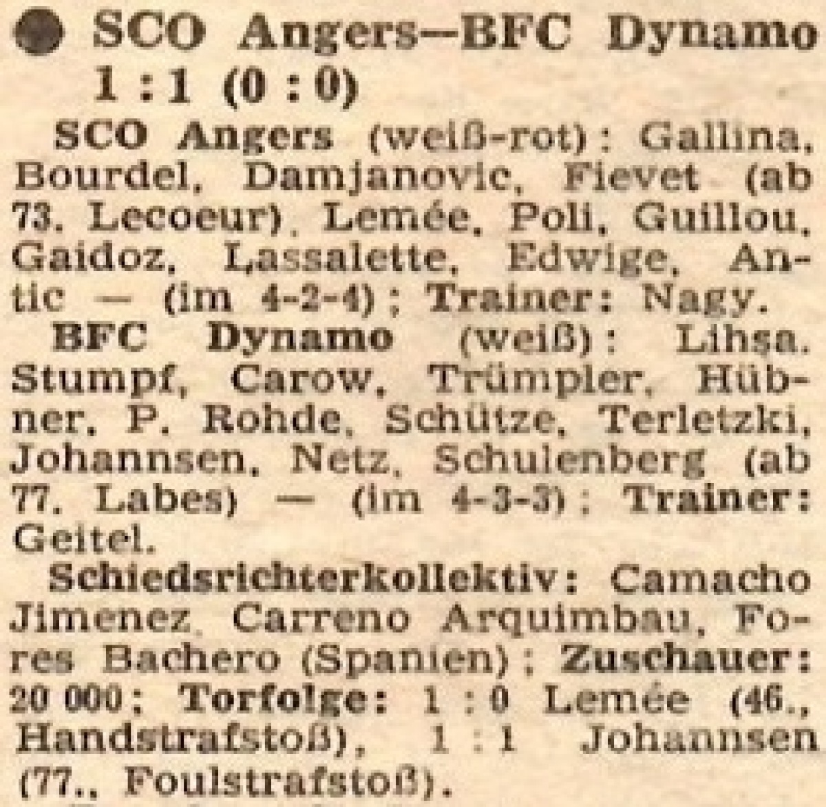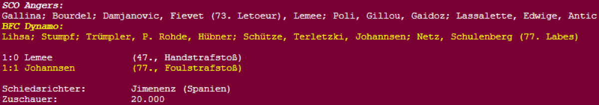 «Анжер» Анже - «Динамо» Берлин - 1:1