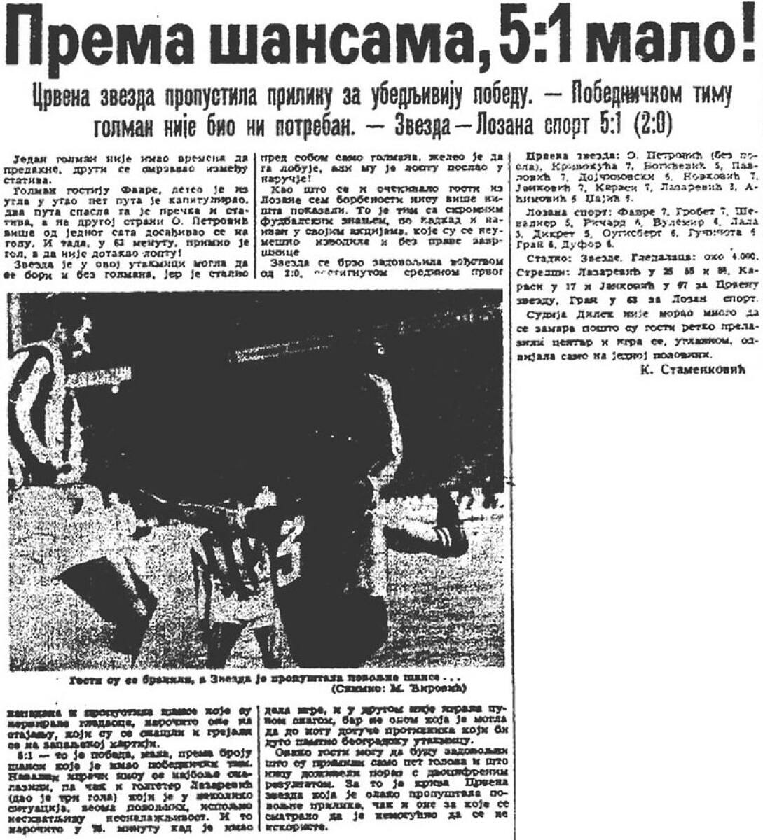 «Црвена Звезда» Белград - «Лозанна-Спортс» Лозанна - 5:1