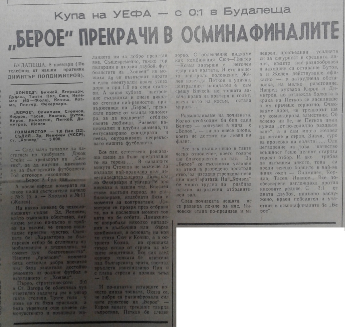 «Гонвед» Будапешт - «Берое» Стара-Загора - 1:0
