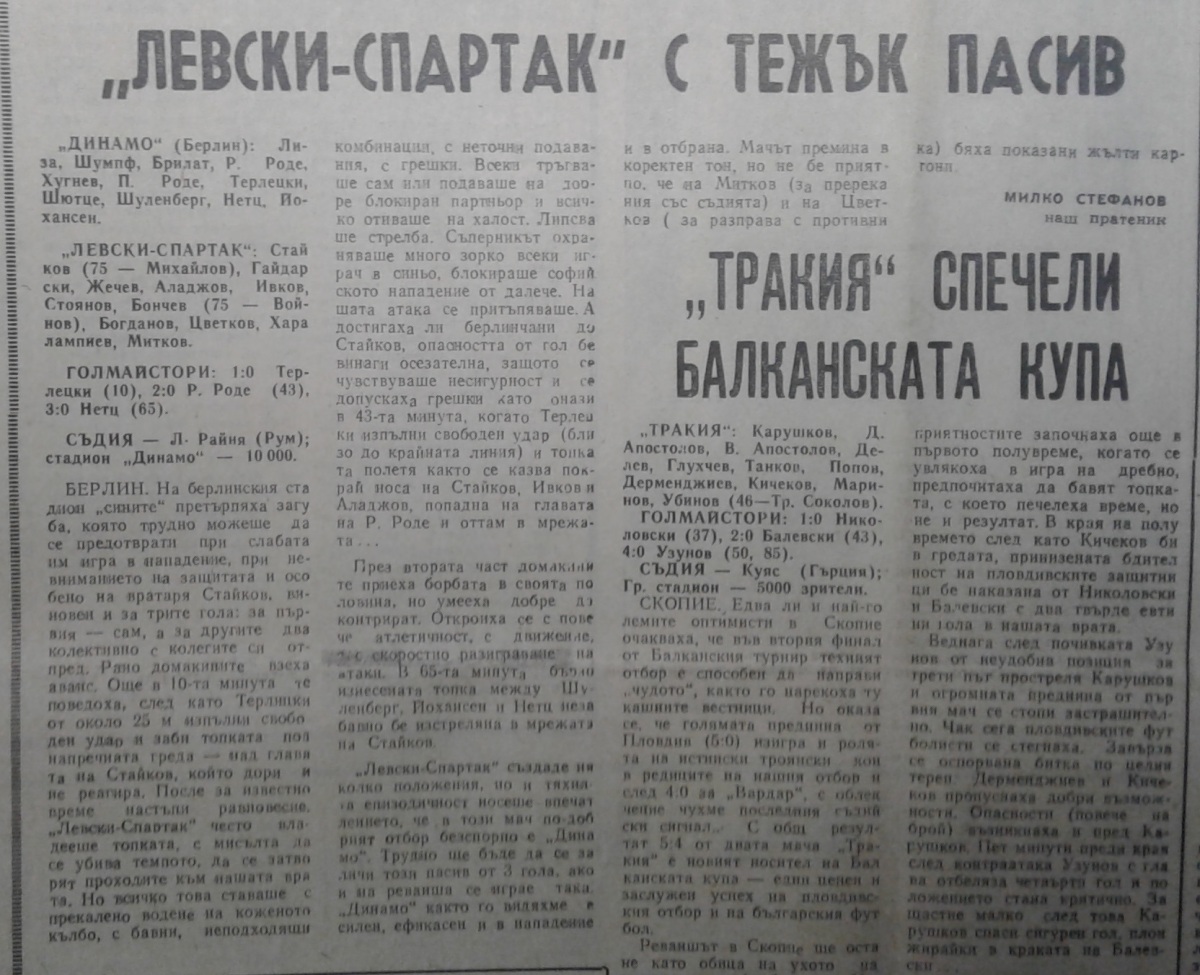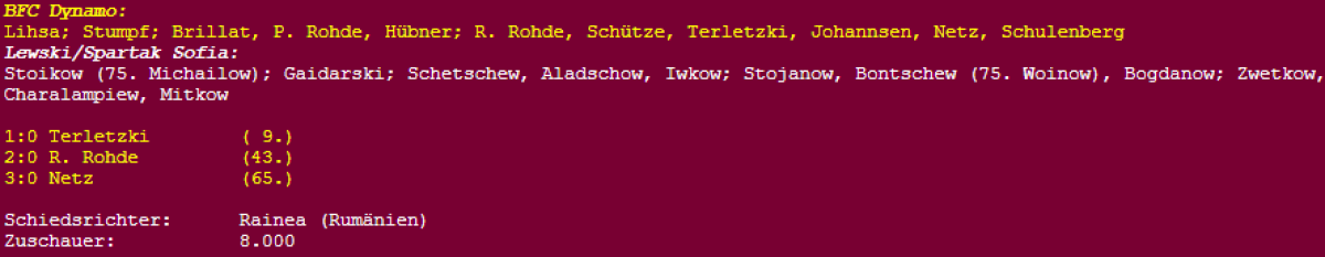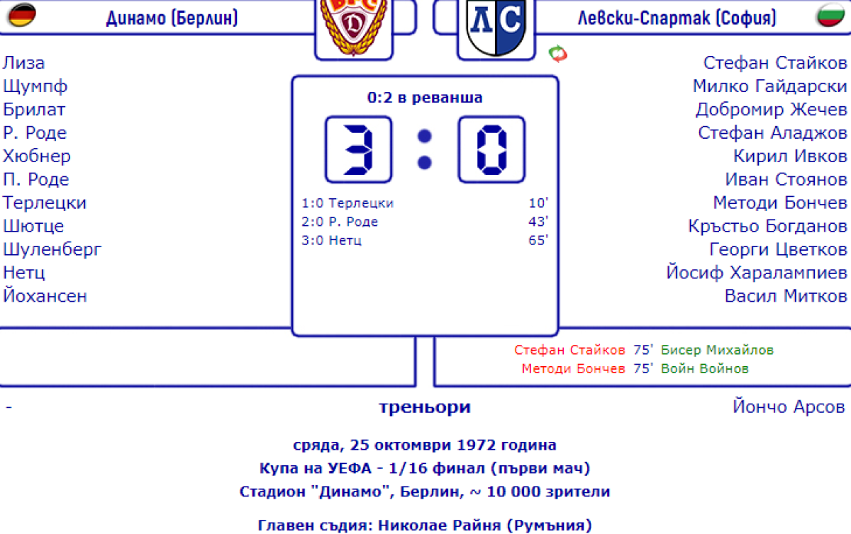 «Динамо» Берлин - «Левски-Спартак» София - 3:0