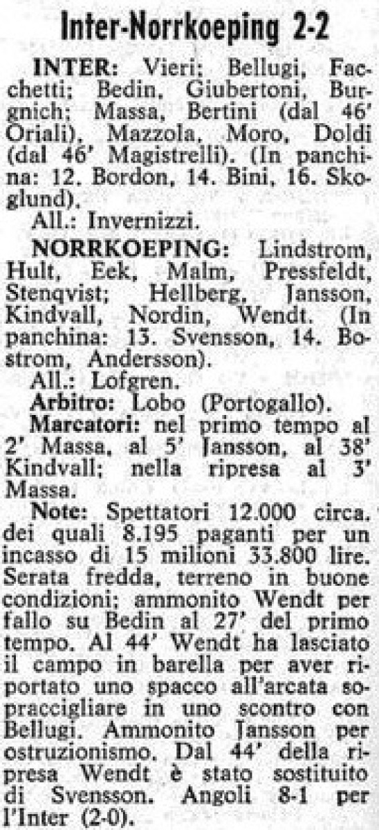 «Интернационале» Милан - «ИФК Норрчёпинг» Норрчёпинг - 2:2