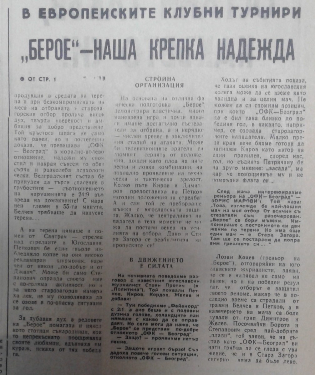 ОФК Белград - «Берое» Стара-Загора - 0:0