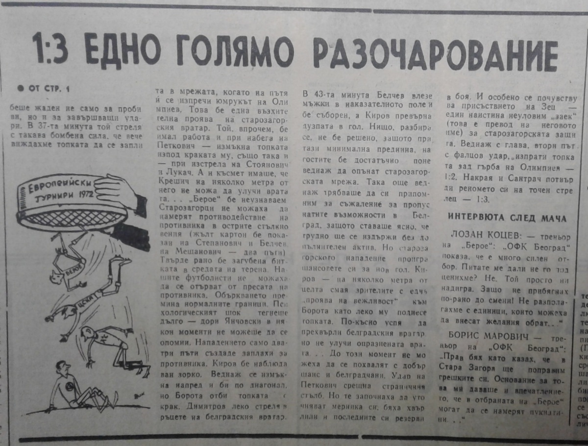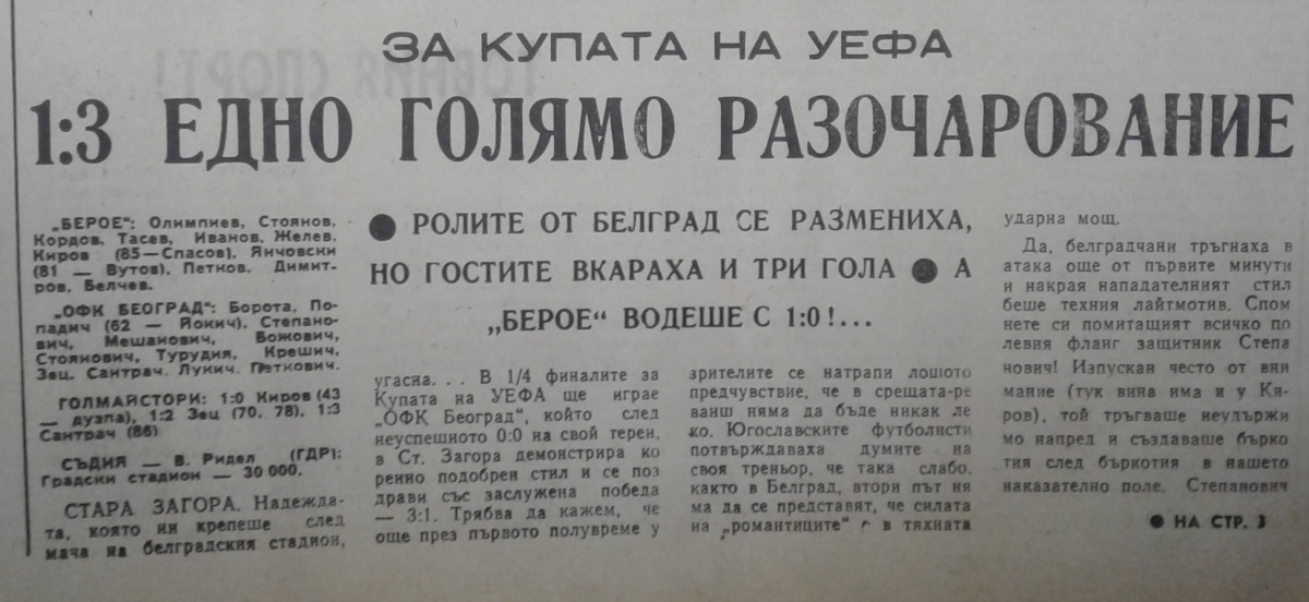 «Берое» Стара-Загора - ОФК Белград - 1:3