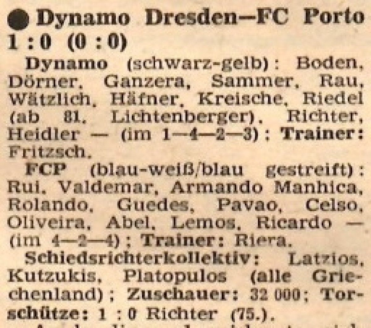 «Динамо» Дрезден - «Порту» Порту - 1:0