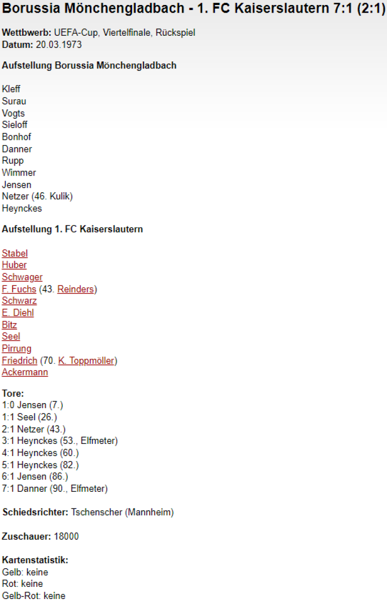 «Боруссия» Мёнхенгладбах - «1. ФК Кайзерслаутерн» Кайзерслаутерн - 7:1