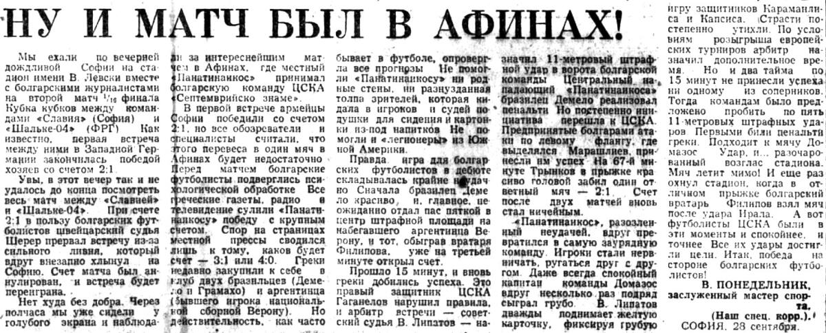 Результат матча аннулирован и встреча позднее переиграна из-за того, что арбитром была нарушена процедура пробития пенальти. leg 7-1. During the match, Roberto Boninsegna was carried off, allegedly having been hit by a beer can. The match was annulled a