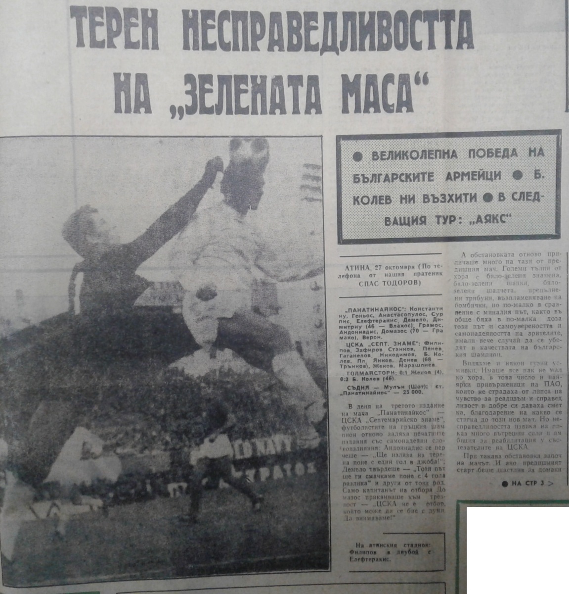 «Панатинаикос» Афины - «ЦСКА Септемврийско Знаме» София - 0:2