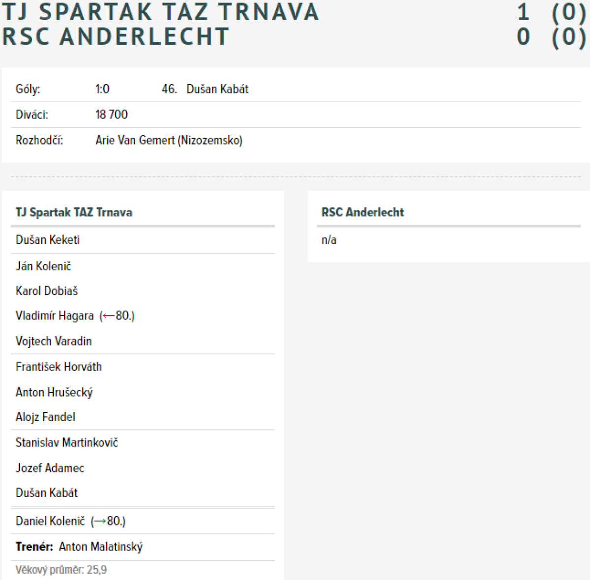 «Спартак» Трнава - «Андерлехт» Андерлехт - 1:0