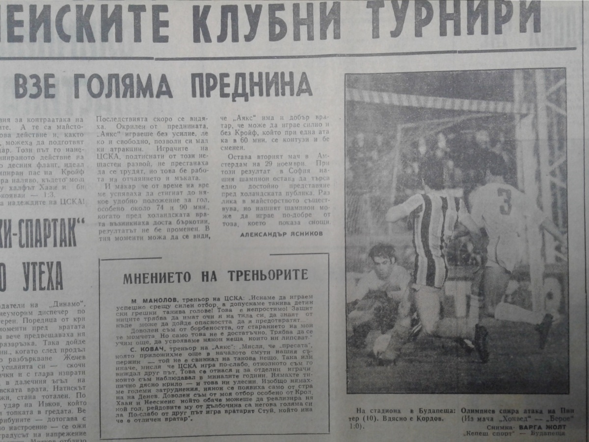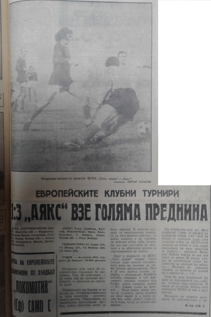 «ЦСКА Септемврийско Знаме» София - «Аякс» Амстердам - 1:3