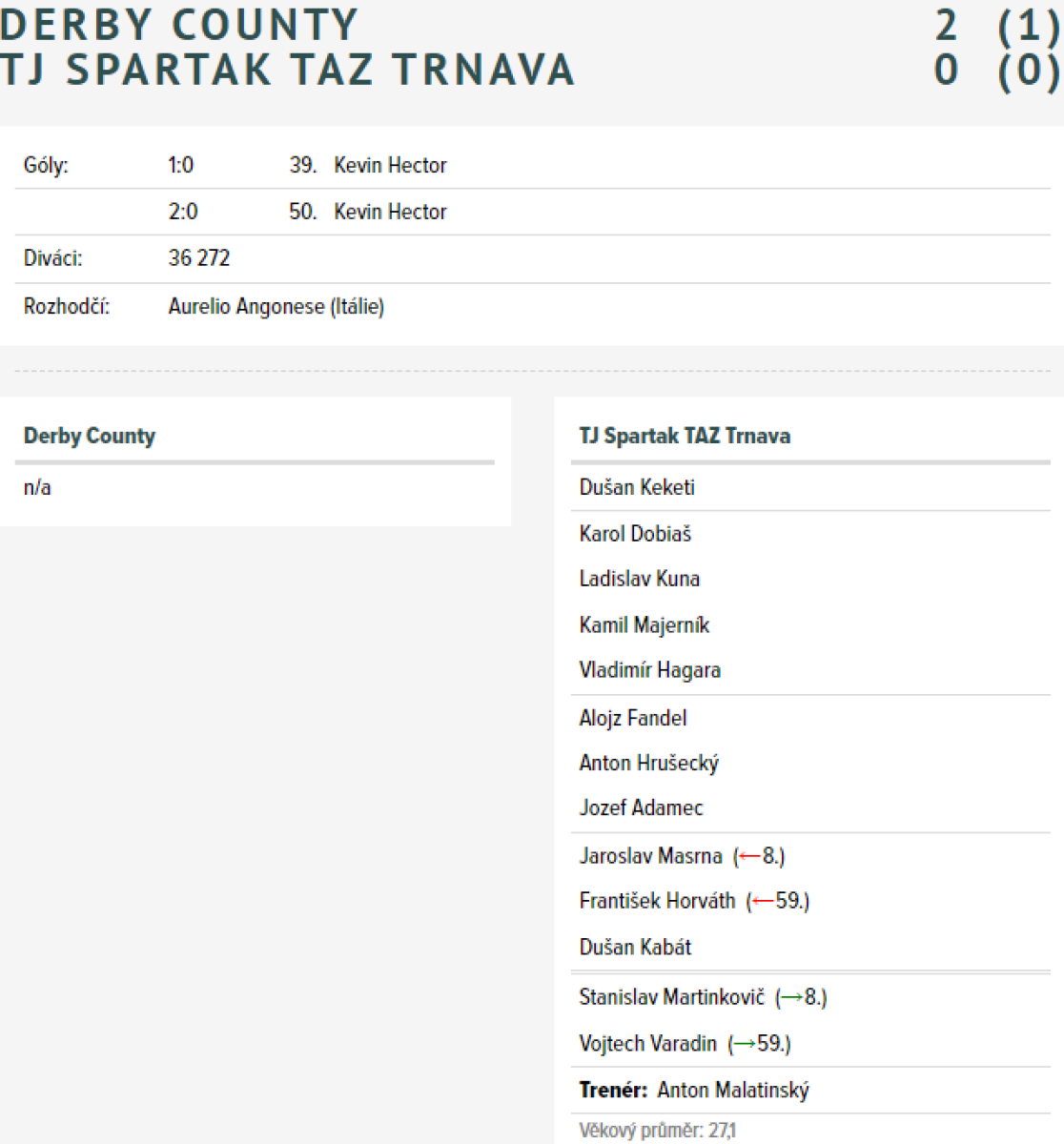 «Дерби Каунти» Дерби - «Спартак» Трнава - 2:0