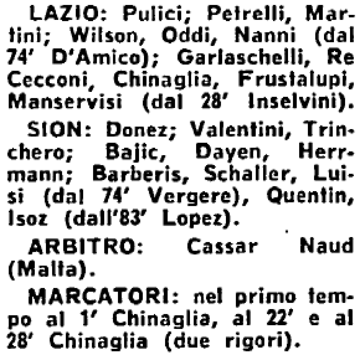 «Лацио» Рим - «Сьон» Сьон - 3:0