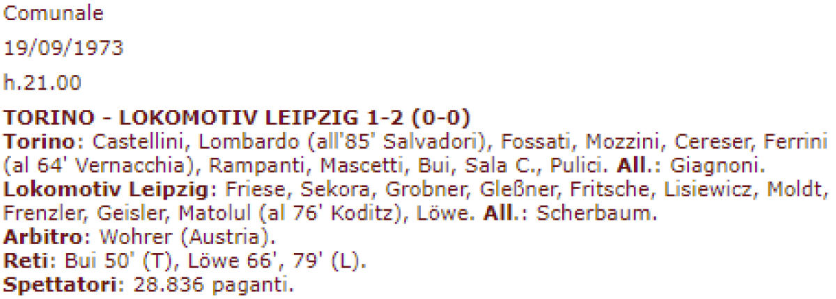 «Торино Кальчо» Турин - «1. ФК Локомотив» Лейпциг - 1:2