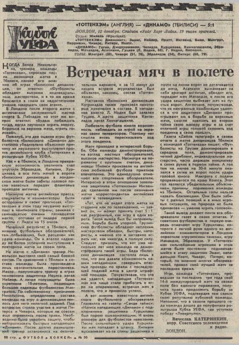 «Тоттенхэм Хотспур» Лондон - «Динамо» Тбилиси - 5:1